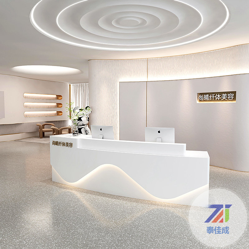 半圓形接待臺公司前臺弧形創(chuàng)意美容院辦公桌收銀臺玻璃鋼吧臺定制