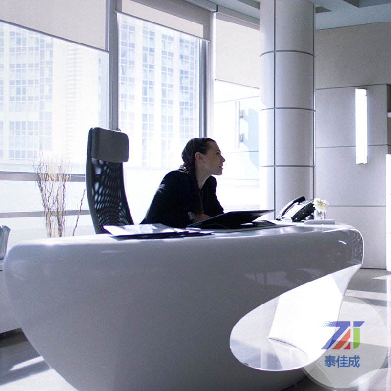 定制大型創(chuàng)意異形玻璃鋼烤漆前臺公司大堂接待臺售樓部服務(wù)臺吧臺