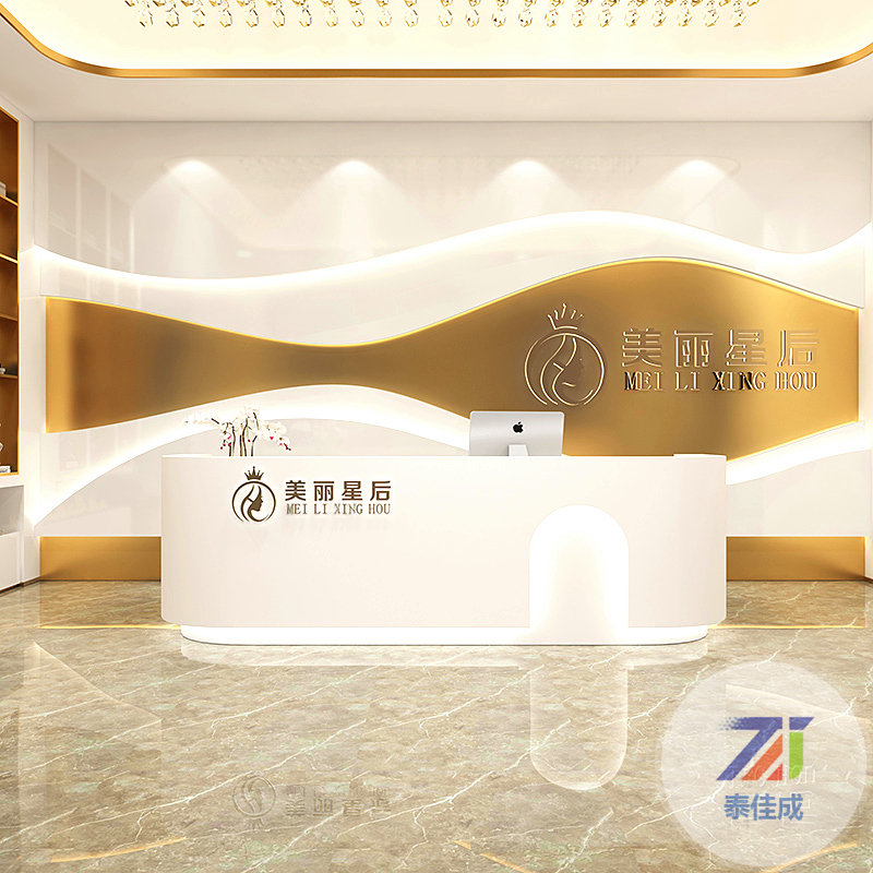 玻璃鋼異形前臺定制烤漆接待臺公司CU型吧臺弧形迎賓臺收銀臺定做