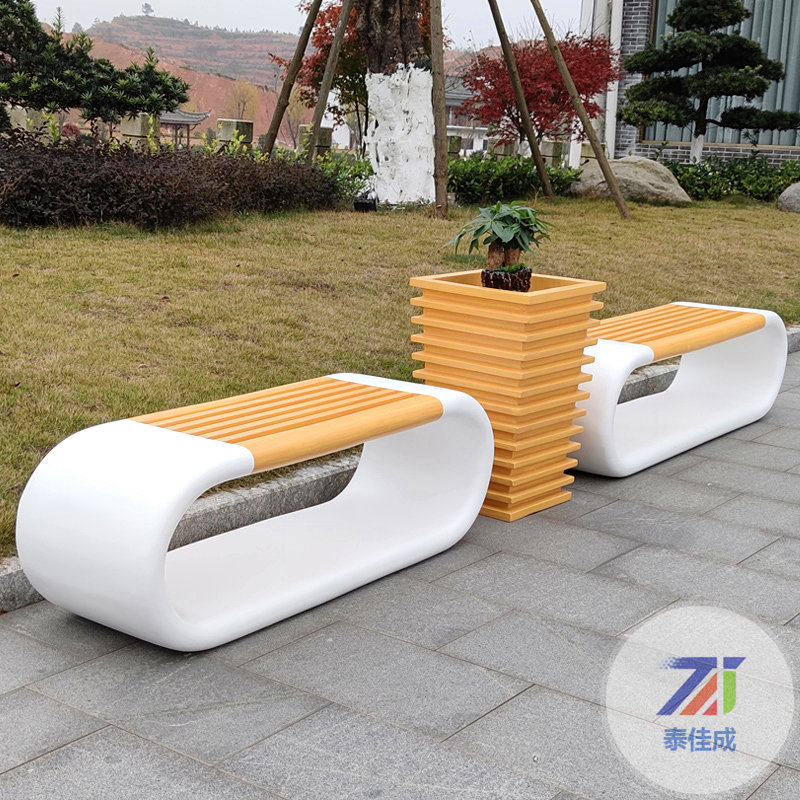 玻璃鋼椅休閑椅環(huán)形座椅商場美陳休閑椅子創(chuàng)意木紋椅公園休息長椅