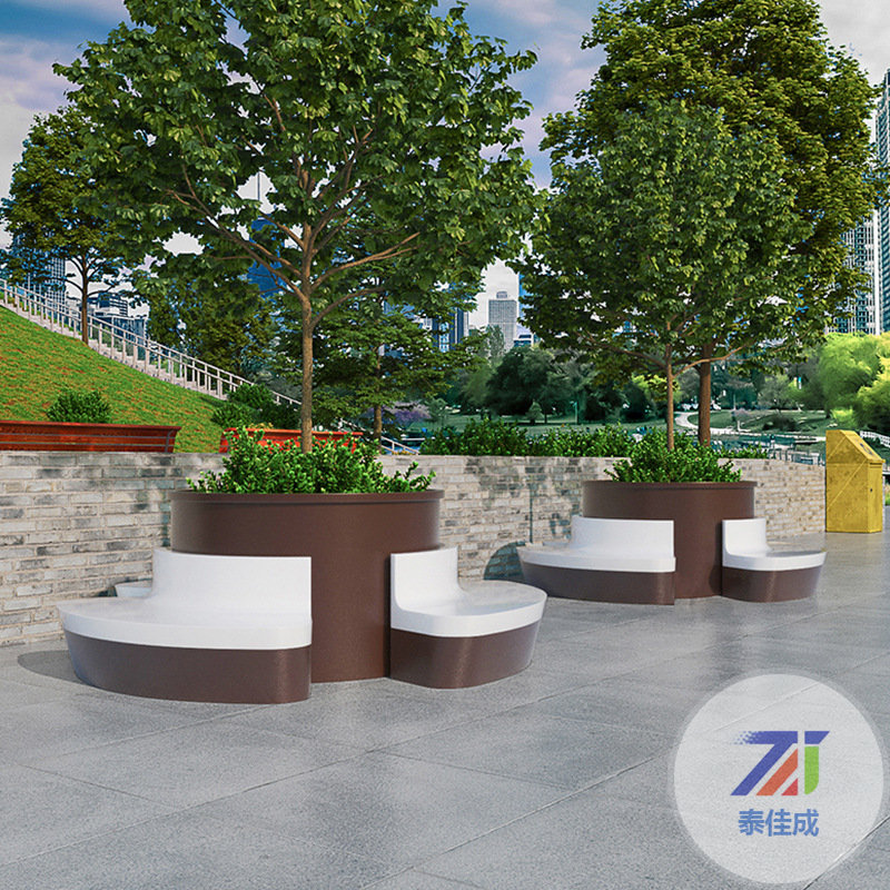 玻璃鋼休閑座椅樹池花盆防腐木坐凳創(chuàng)意戶外公共休息商場景觀定制