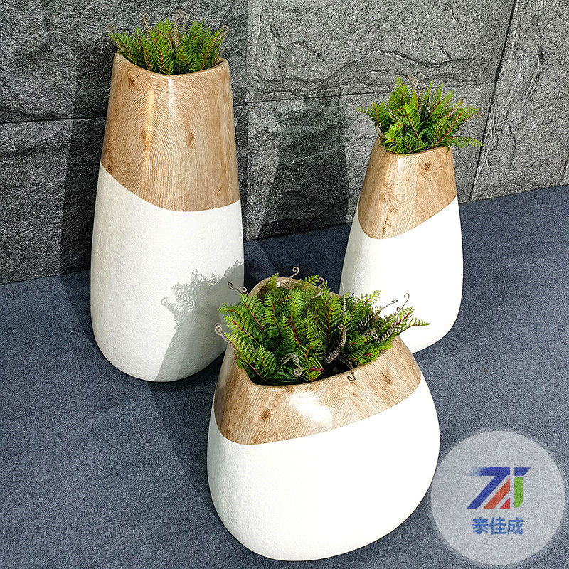 玻璃鋼現(xiàn)代橢圓大花盆戶外花器組合白色田園簡(jiǎn)約輕奢景觀擺件定制